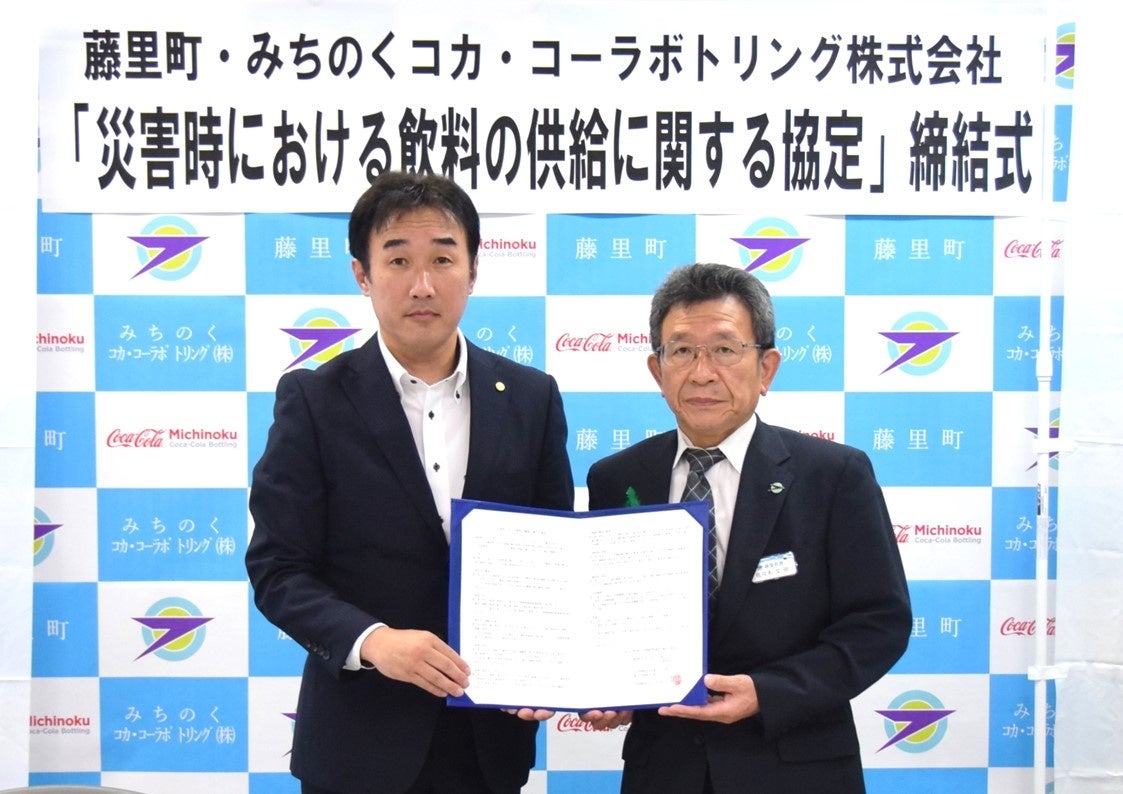 みちのくコカ・コーラボトリング、秋田県 藤里町と「災害時における飲料の確保に関する協定」を締結