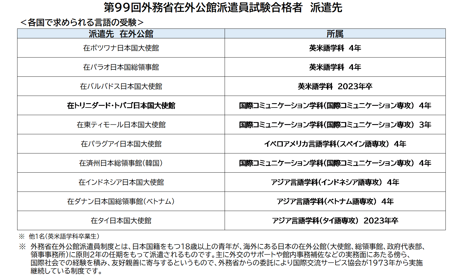 第99回外務省在外公館派遣員試験 神田外語大学から11人の学生・卒業生が合格