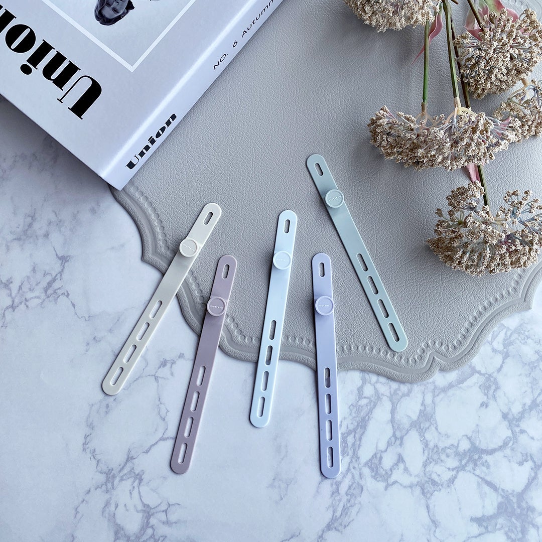 MOTTERUで人気のケーブルバンドに、今までのケーブルバンドより少し長い4穴タイプが新発売。充電ケーブル、ドライヤーやヘアアイロンのコード、パソコンの配線などをすっきりまとめることができます。4穴タイプなので、今まで止めづらかった太めのケーブルや長いケーブルをまとめる際に便利になりました。また、パンやスナック菓子の袋を閉じたり、ビニール傘の目印にしたりなど、いろいろな使い方ができます。