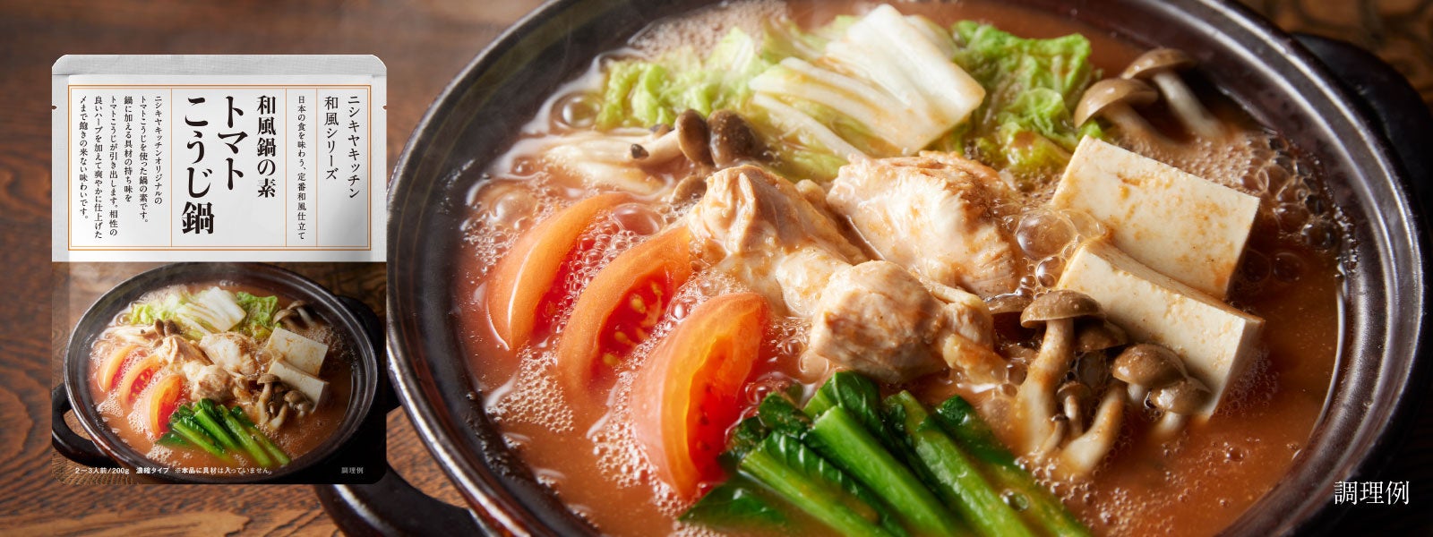 開発期間 3 年!ニシキヤキッチンオリジナルの「トマトこうじ」が完成! 発酵食品「こうじ」の旨みを〆までおいしく味わえる和風の鍋の素 「トマトこうじ鍋の素」「こうじみそ豆乳鍋の素」新発売