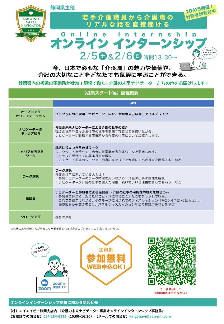 『介護の未来ナビゲーター事業オンラインインターンシップ事務局』(株式会社エイエイピー静岡支店内)