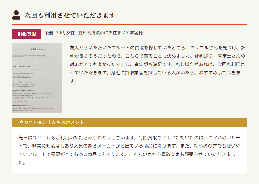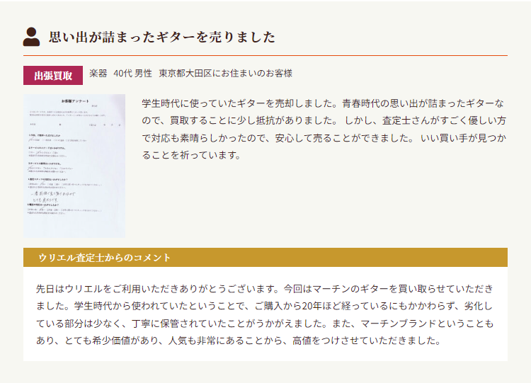 ウリエルの楽器買取をご利用いただいたお客様の声