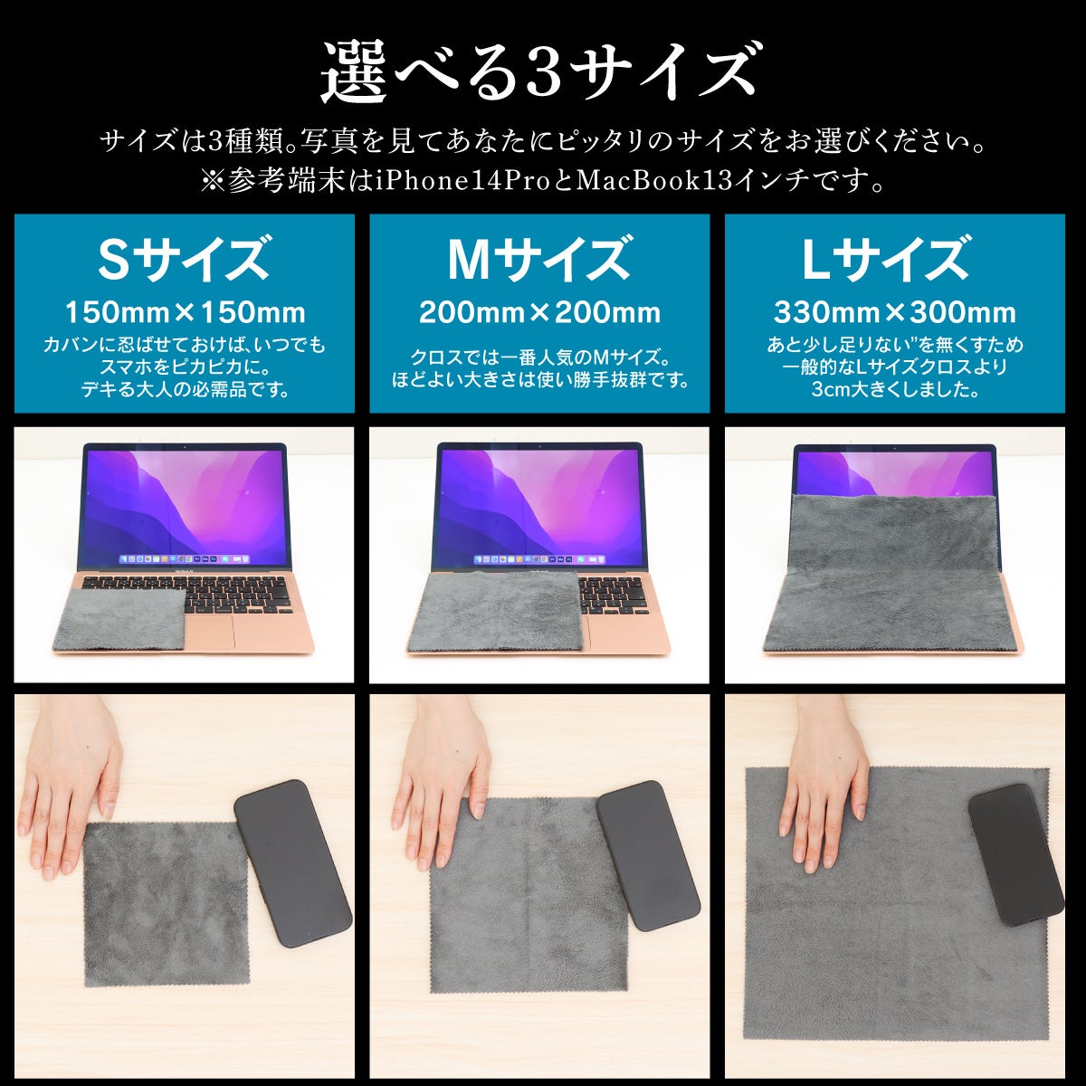 Sサイズは持ち運びにも便利な小さめサイズ。カバンに忍ばせておけば、いつでもスマホをピカピカに。デキる大人の必需品です。ちょっとしたプレゼントにもピッタリです。