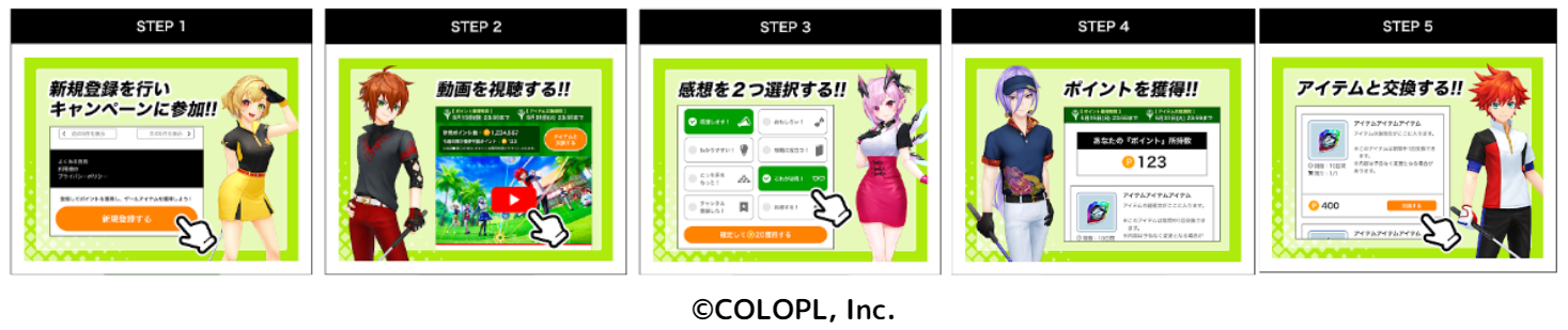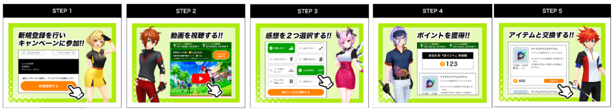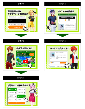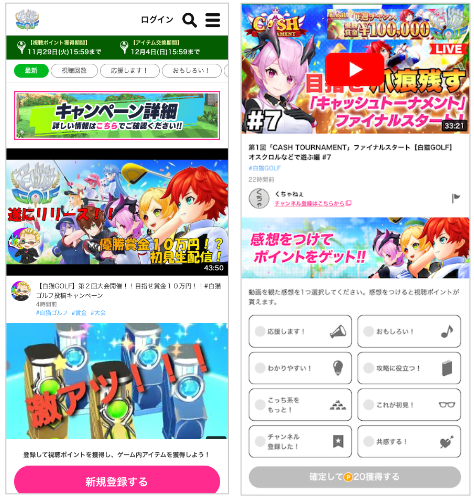 キャンペーンでは、動画投稿者は指定のハッシュタグをつけて動画を投稿することで報酬やゲーム内アイテムをもらうことができます。また動画視聴者は視聴後の感想入力で獲得したポイントをゲーム内アイテムと交換することができます。