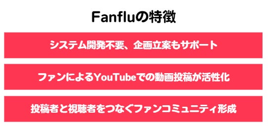 しかし、制作やタイアップのコストが大きくなってきており、さらに効果が一時的という課題がある中、昨今ではユーザーが自発的に投稿するUGC(User Generated Contents)による動画の重要性が高まっています。これらの課題を解決するためFanfluのサービス提供を開始しています。
