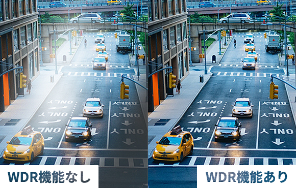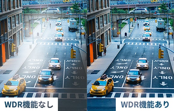 「Q3」はWDR(ワイドダイナミックレンジ)機能を搭載しており、画像ノイズを軽減し画像を鮮明にすると同時に、より大きな明暗差をはっきりと映すことができます。