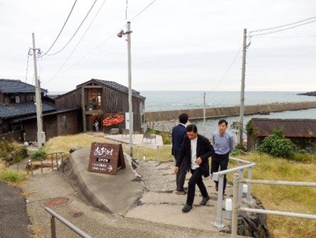郎さん(44)は、初めての地だったが、「おおとく」の立地環境に満足そうだった。特にタイのバンコク在住の石岡さんは、たまたま富山への帰省途中での視察だっただけに日本海の風景に感無量の様子で、「陸地と雄島をつなぐ赤い橋や鳥居…日本好きのタイ人は、こうしたいかにもニッポン、という風景が好きなんですよ」と指摘した。