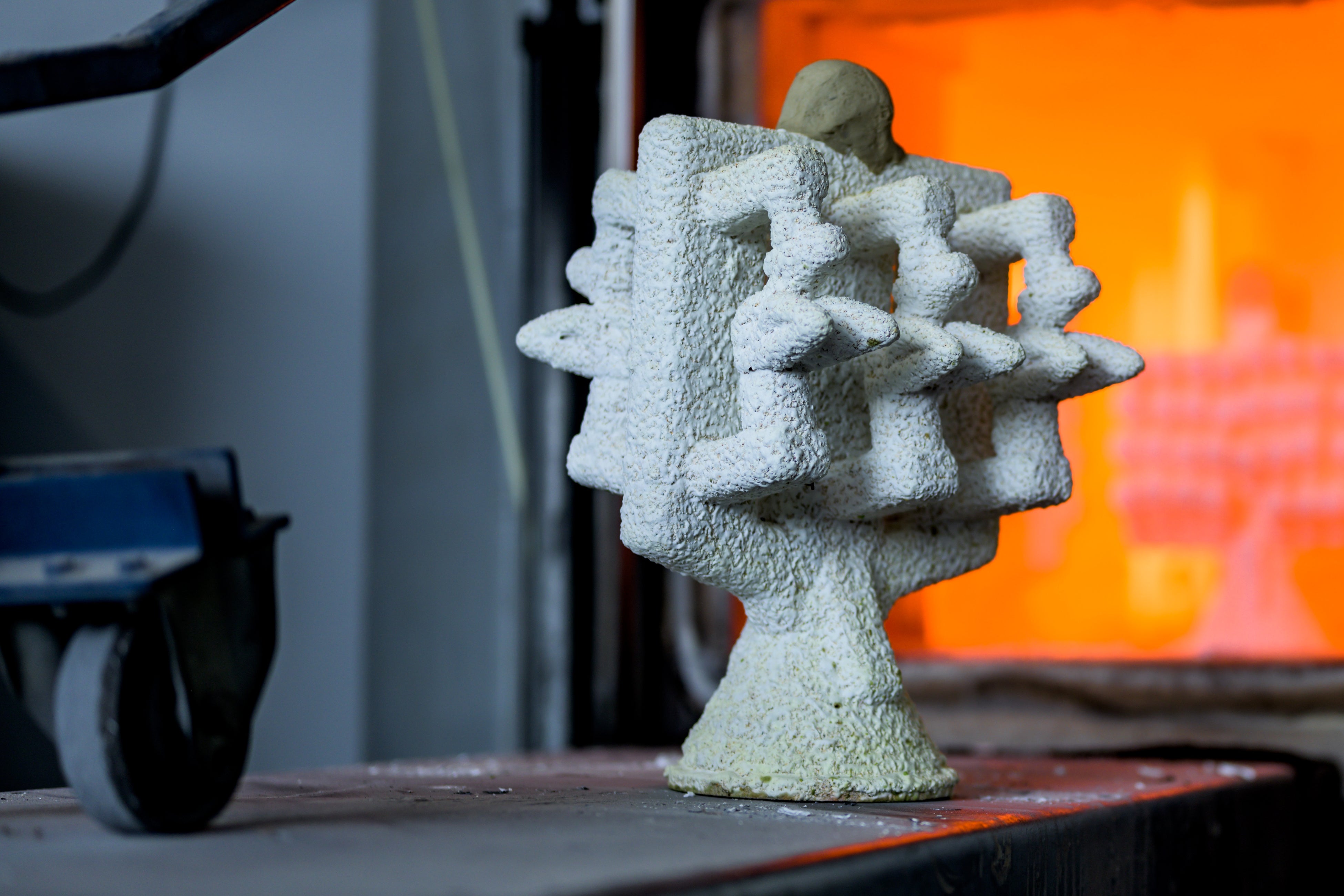 次に、コロイダルシリカとアルミナを含むファインセラミック溶液の複数の層でワックスのエンブレムを包みます。これらの層が固まった後、蒸気圧チャンバーでワックスを溶かし、エンブレムの形をした中空の空洞を持つセラミックの型を残します。