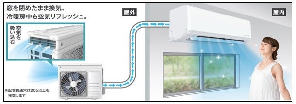室外機から外気を取込み、室内へ新鮮な空気を届けます。冷暖房中でも、換気のみでも運転が可能なので、窓を