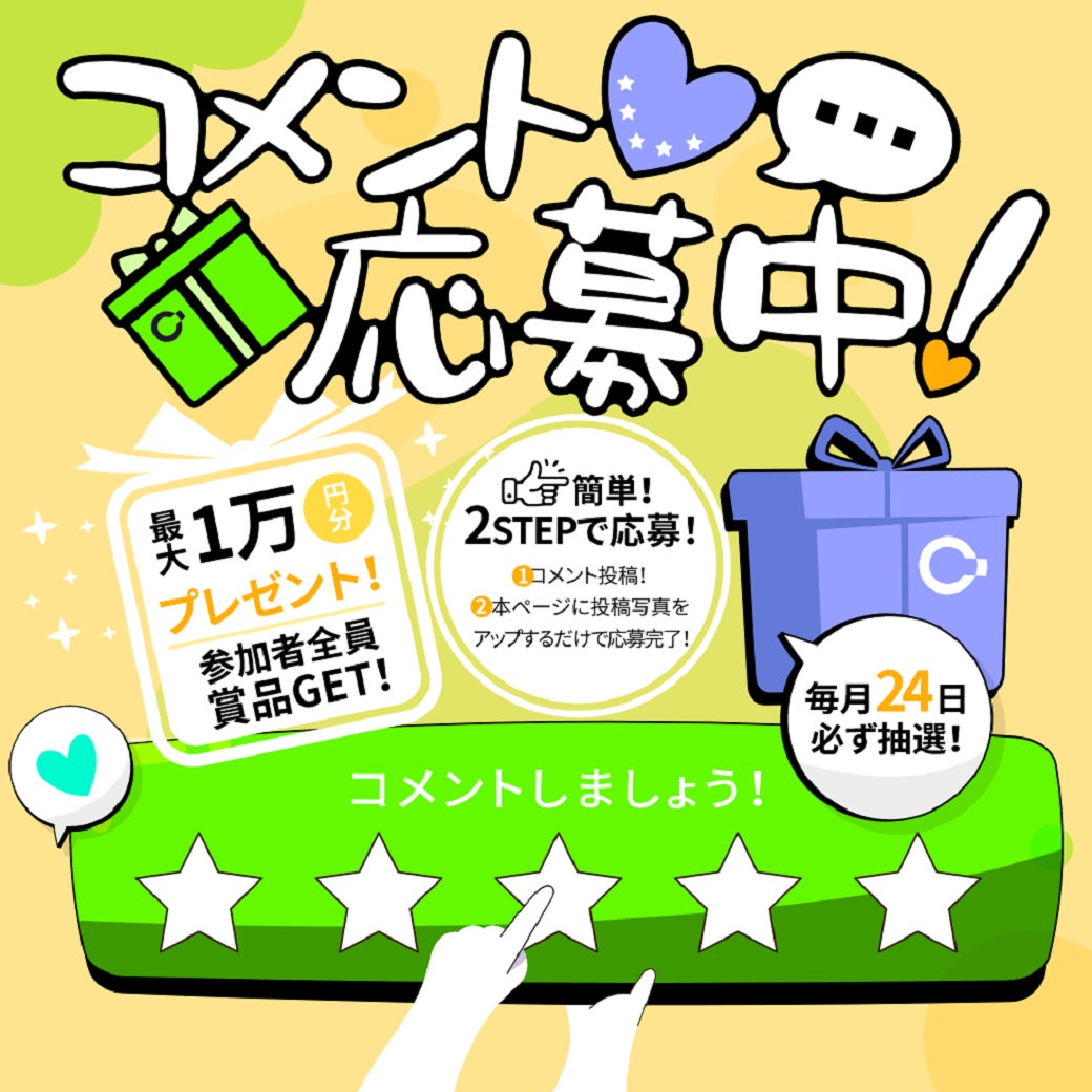 ※レビューを投稿するだけで、毎月抽選で合計35名様にA~C賞をプレゼント!また、惜しくも抽選に外れてしまった参加者様にも参加賞をご用意しております。