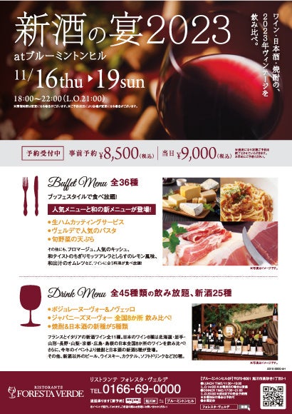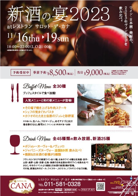 ワイン・日本酒・焼酎の新酒飲み比べとビュッフェスタイルのお食事が楽しめる「新酒の宴2023」開催のお知らせ