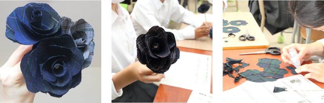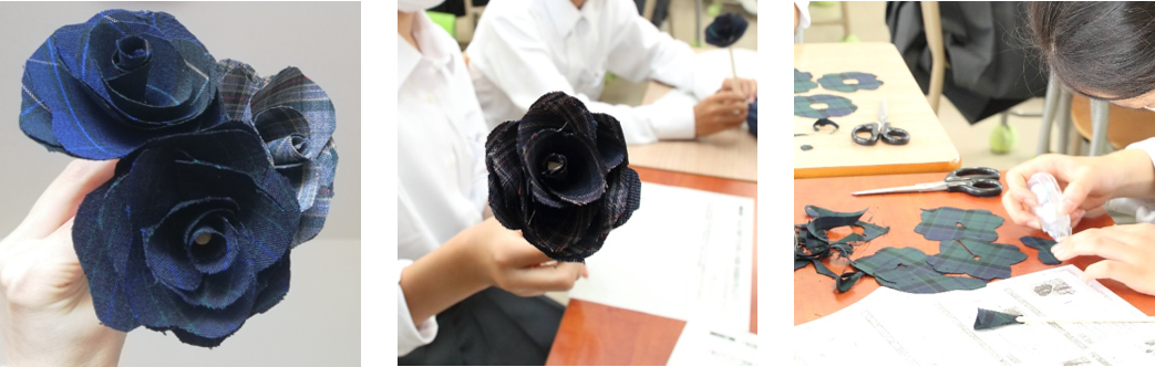4 子どもたちへの質の高い教育に寄与するエコ教材(制服の余り生地でエコフラワーをつくる教材)を提供