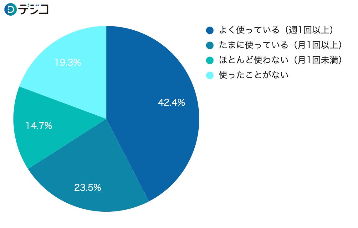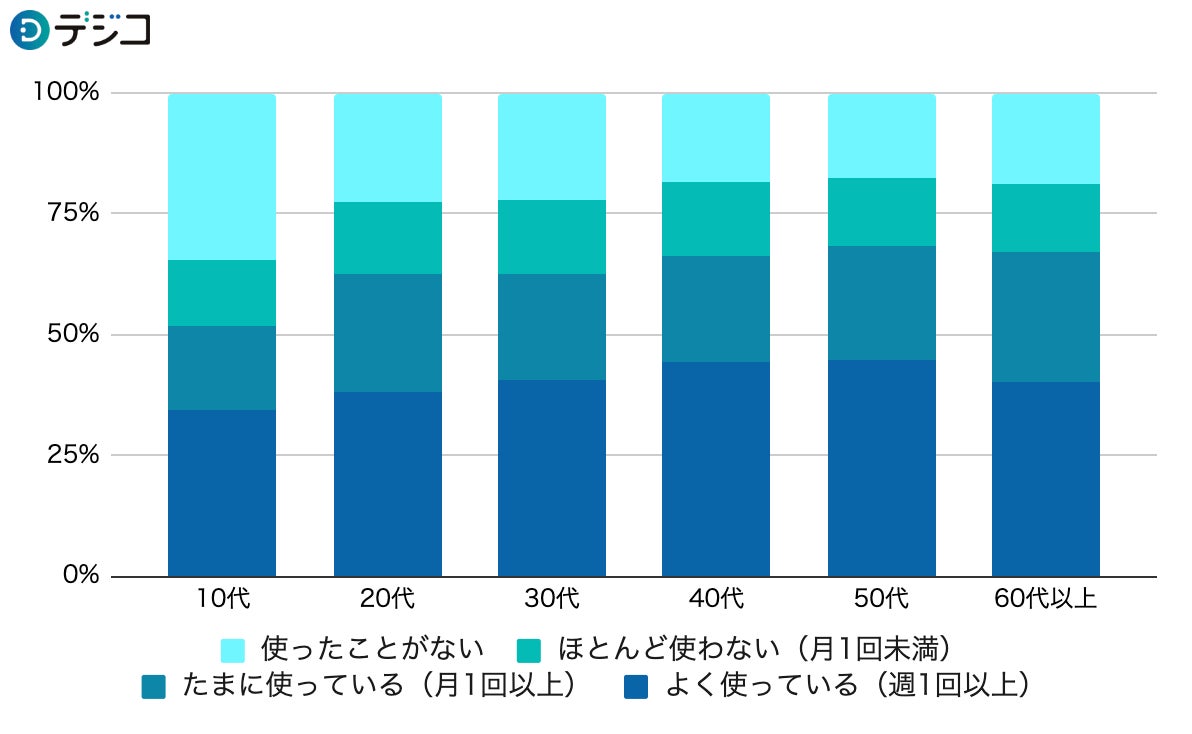 世代別で比較すると、60代以上ではやや減少するものの、年齢に比例して「よく使っている」と割合が多いことがわかりました。
