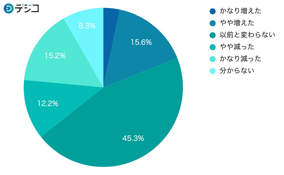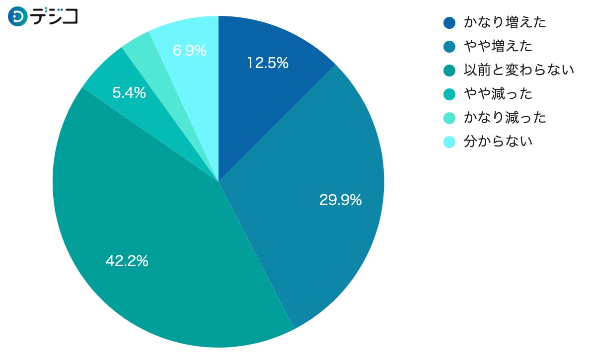 次に、前年と比較して支出額が増減したかをたずねたところ、「減った」と回答した割合が8.4%に対し、「増えた」と回答した割合は42.4%で5倍以上と大きく上回りました。