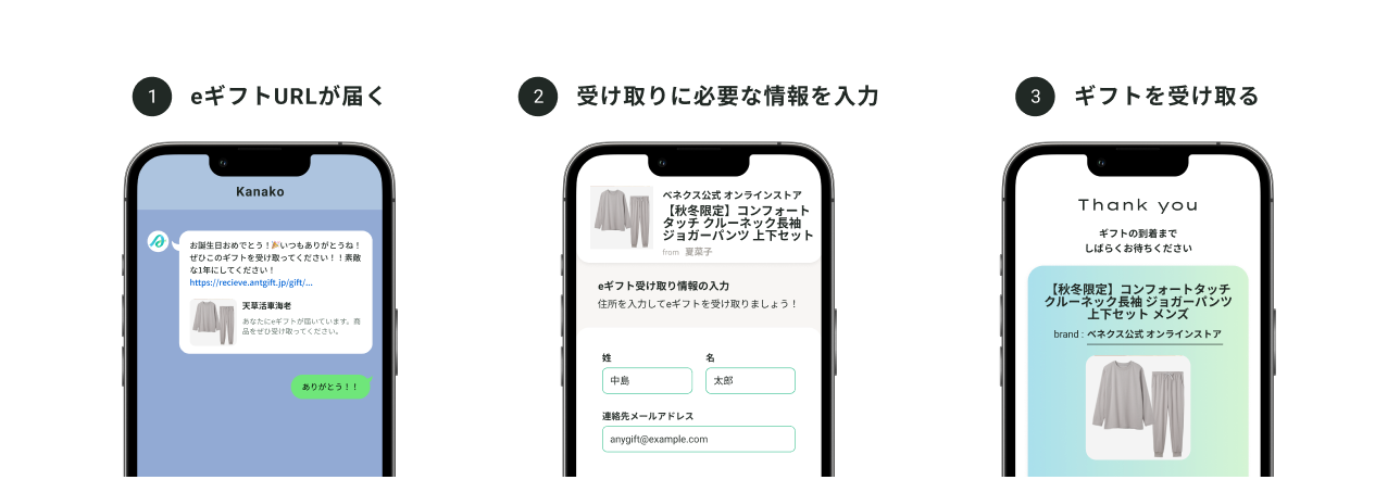 eギフトURLから住所を入力いただくだけで対象商品が届きます