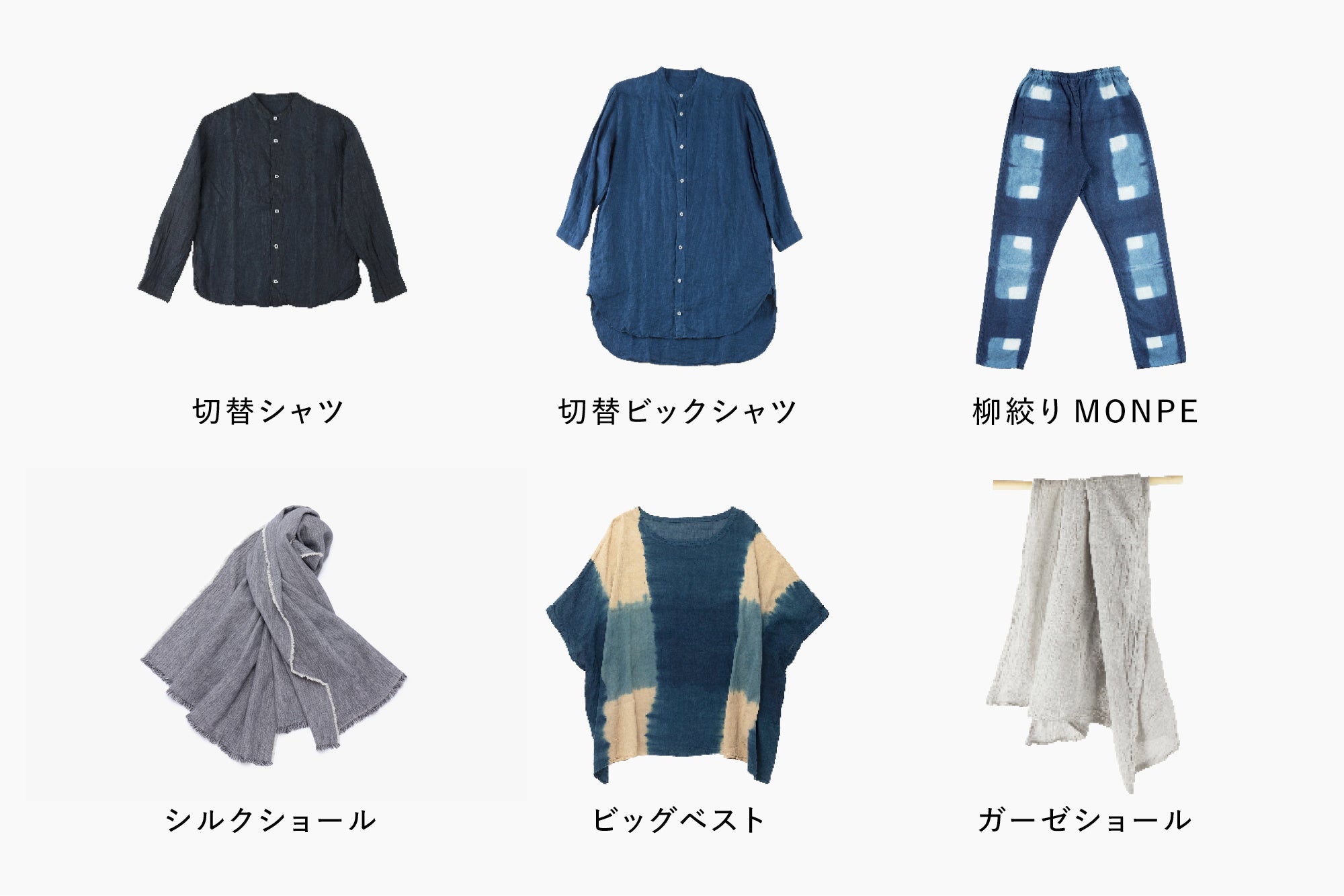宝島染工の自社ブランドの定番商品を中心にコラボMONPEなど、「染」という視点から宝島染工の独自性、藍、土、墨などを使った染めへのこだわりや経年変化の面白味などを店舗での商品紹介やコラムでの情報発信とともに紹介していきます。