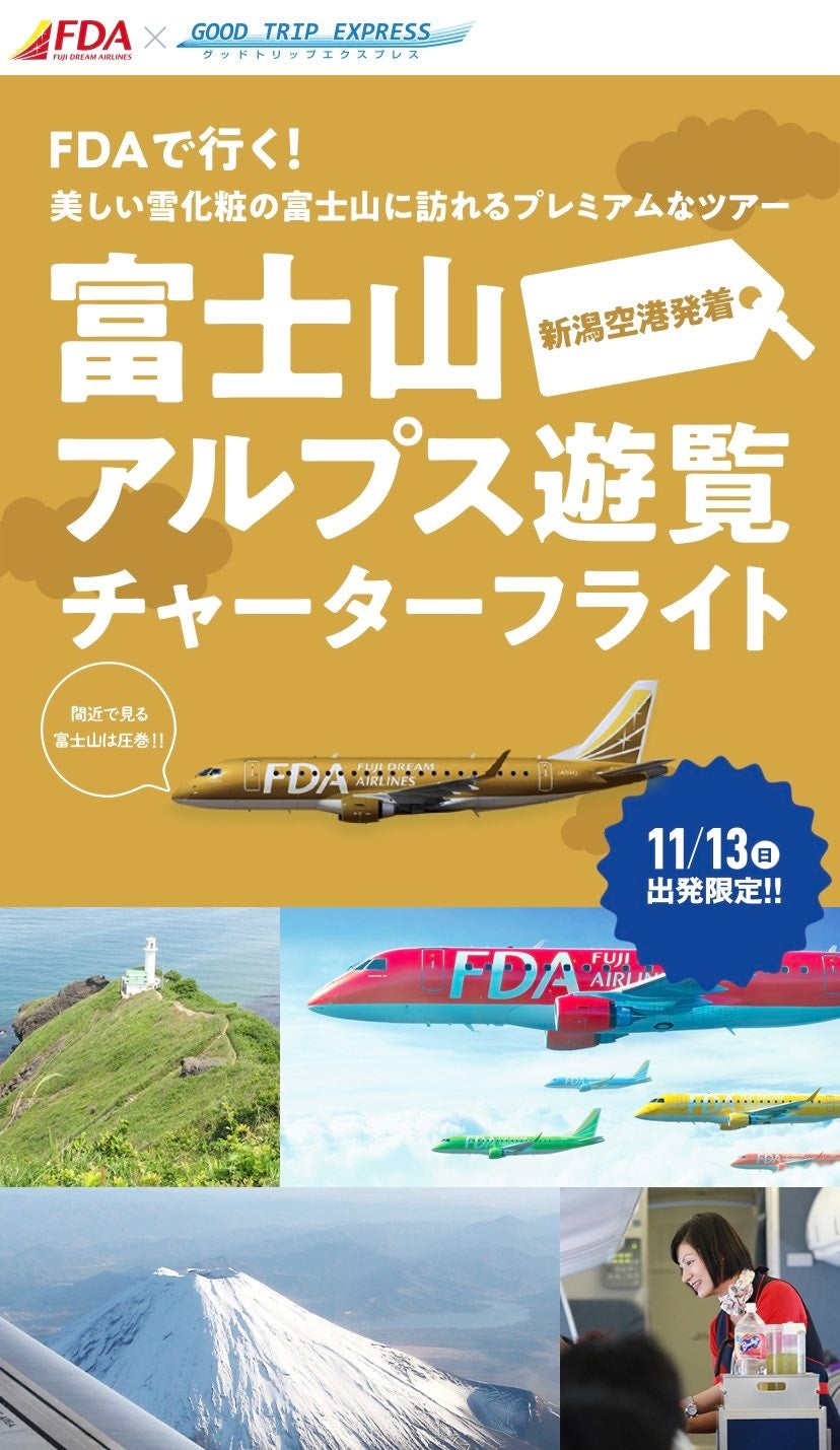 新潟空港発着!FDAで行く「富士山アルプス遊覧チャーターフライト」「佐渡・新潟ぐるっと遊覧チャーターフライト」同時発売中(新潟県)