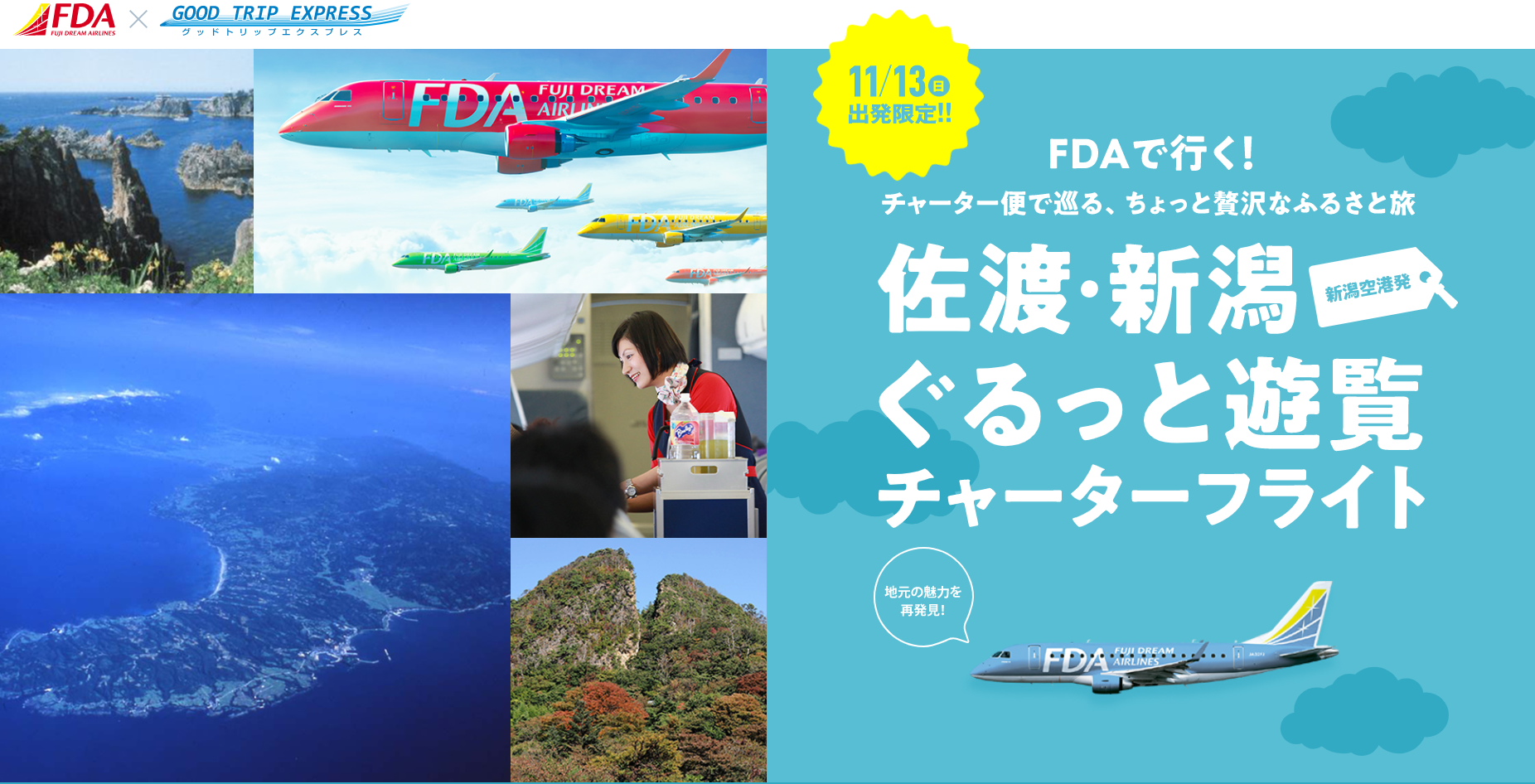 - チャーター便で巡る、ちょっと贅沢なふるさと旅「佐渡・新潟ぐるっと遊覧チャーターフライト」