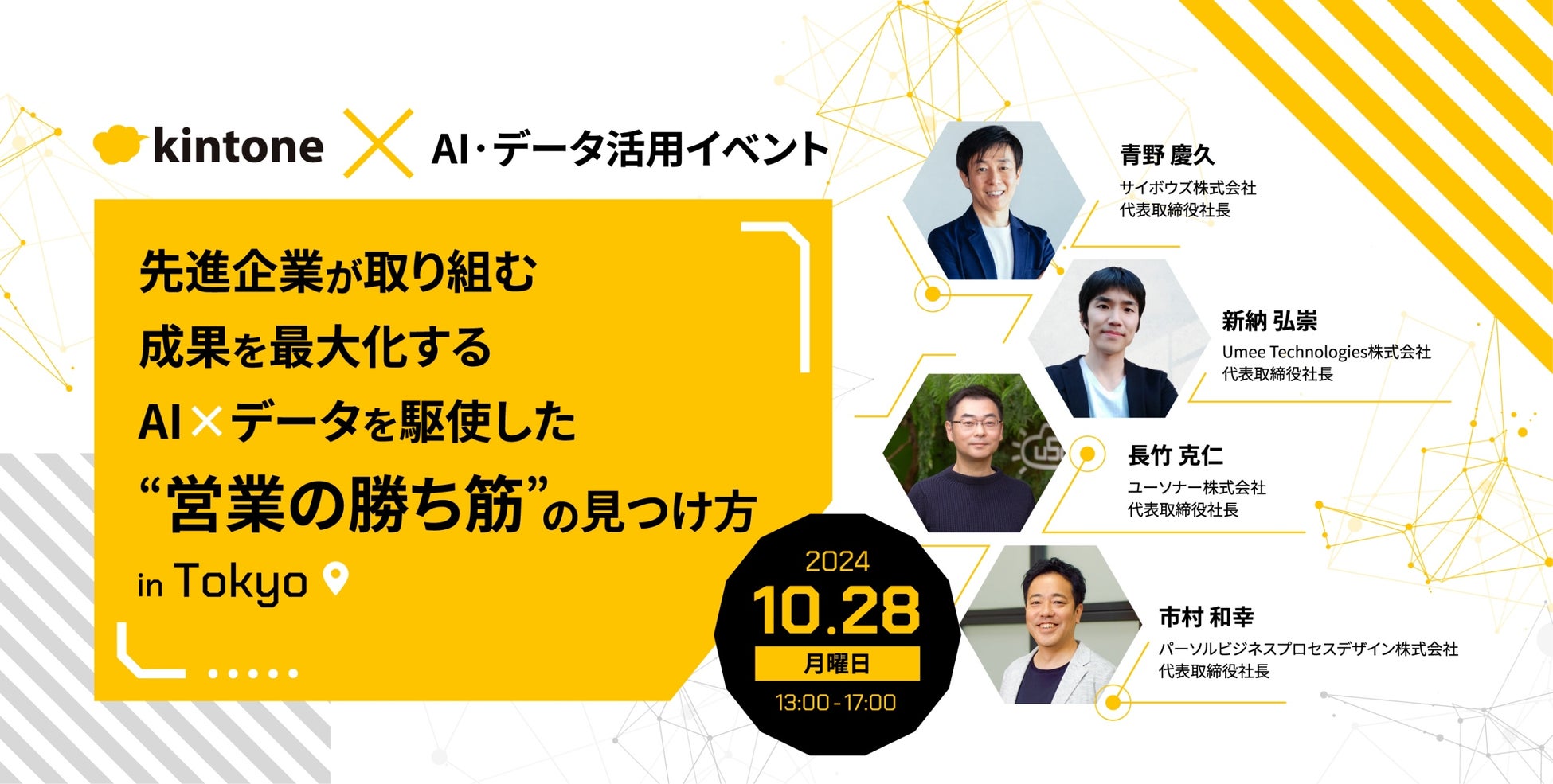 国産AI・サービスのトップ企業4社が集う【kintone × AI・データ活用イベント】を10.28に開催決定!
