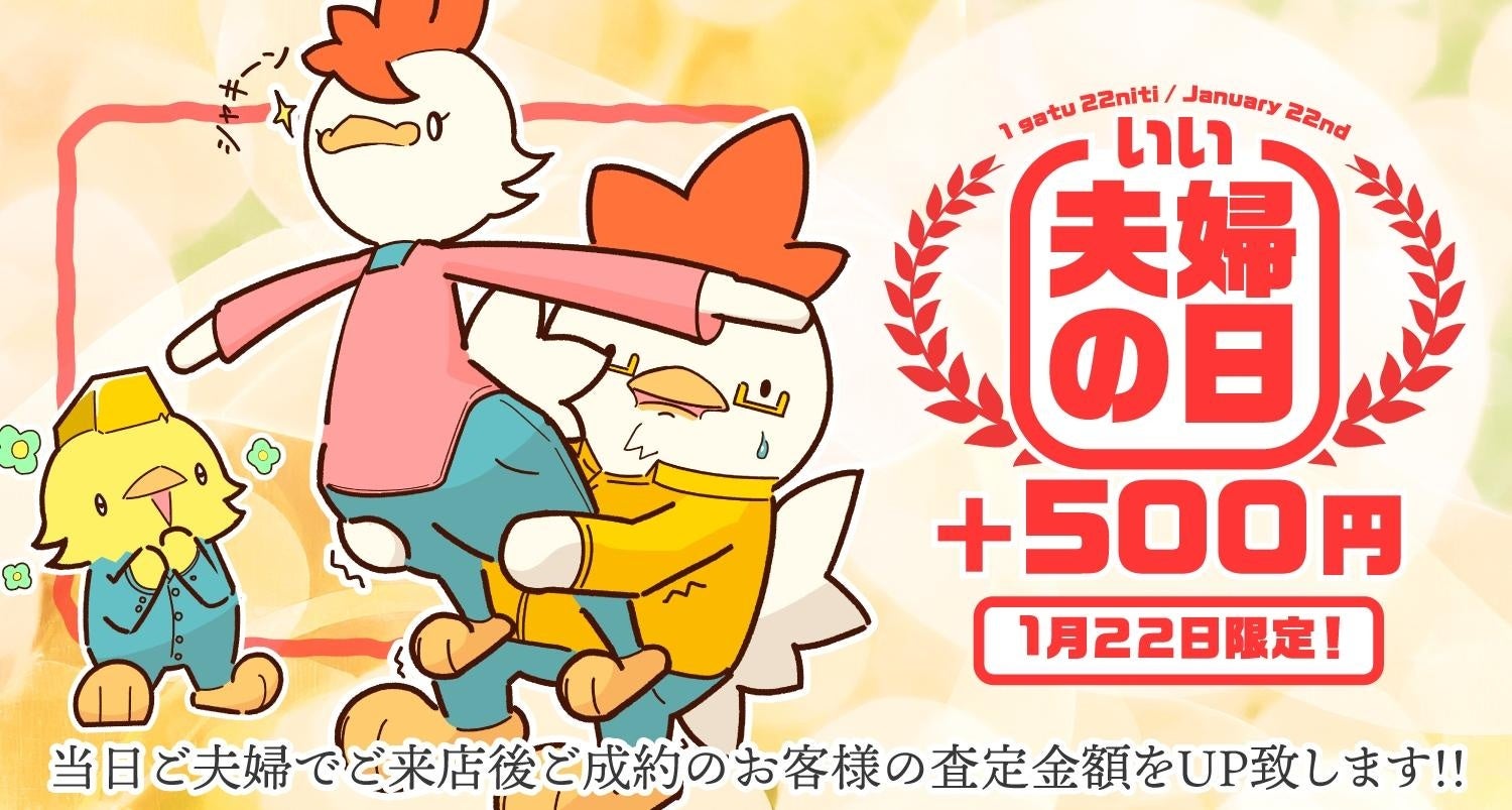 【ゴールドプラザ】1月22日は良い夫婦の日!ご夫婦でご来店の際にご成約でキャッシュバックキャンペーン!!