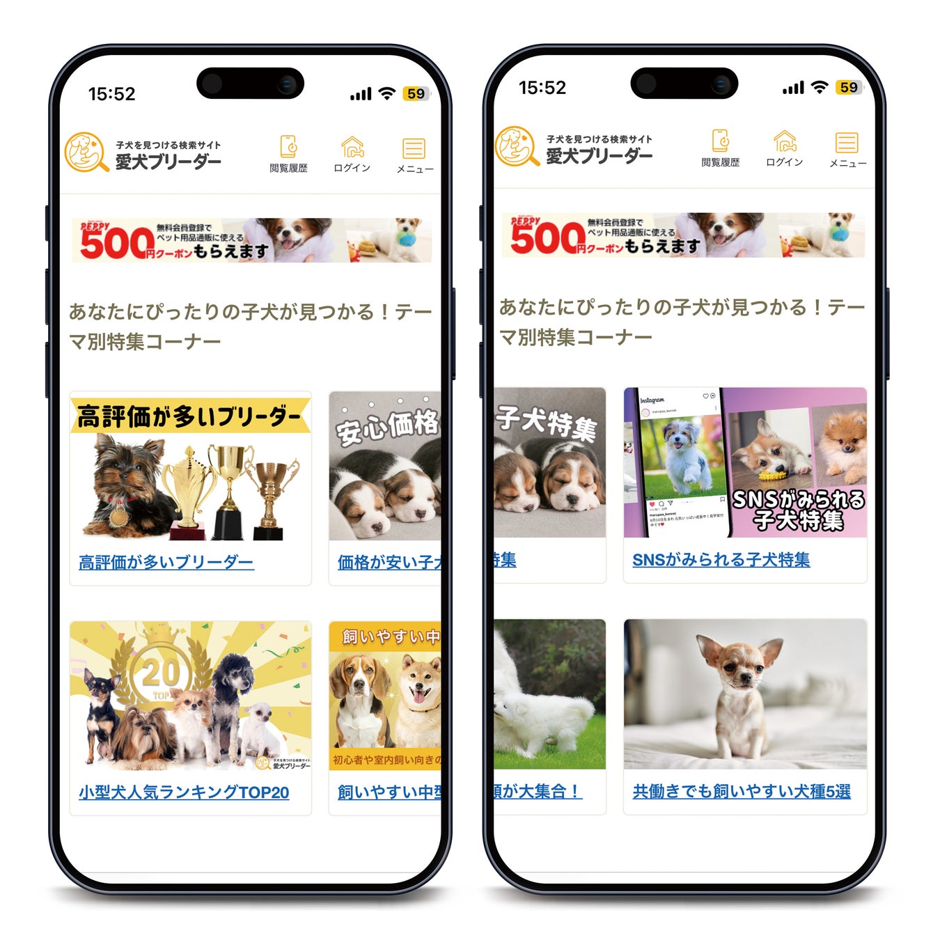 新機能②犬種やブリーダーの特徴で選べる特集コーナー