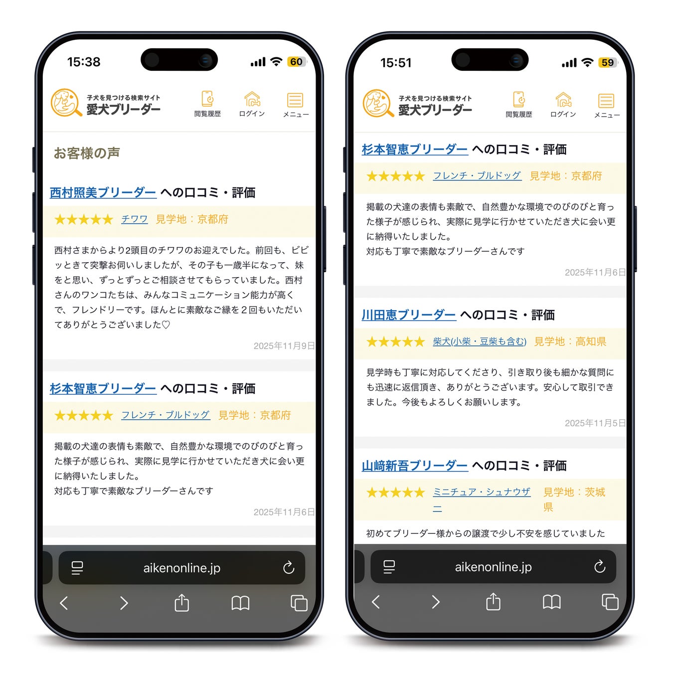 新機能③信頼できるブリーダーを探せる口コミ欄