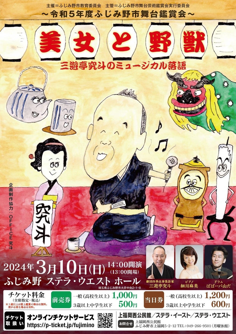 令和6年1月23日(火)から、上福岡西公民館、ふじみ野ステラ・イースト、ステラ・ウェスト、オンラインにてチケットを販売中です。