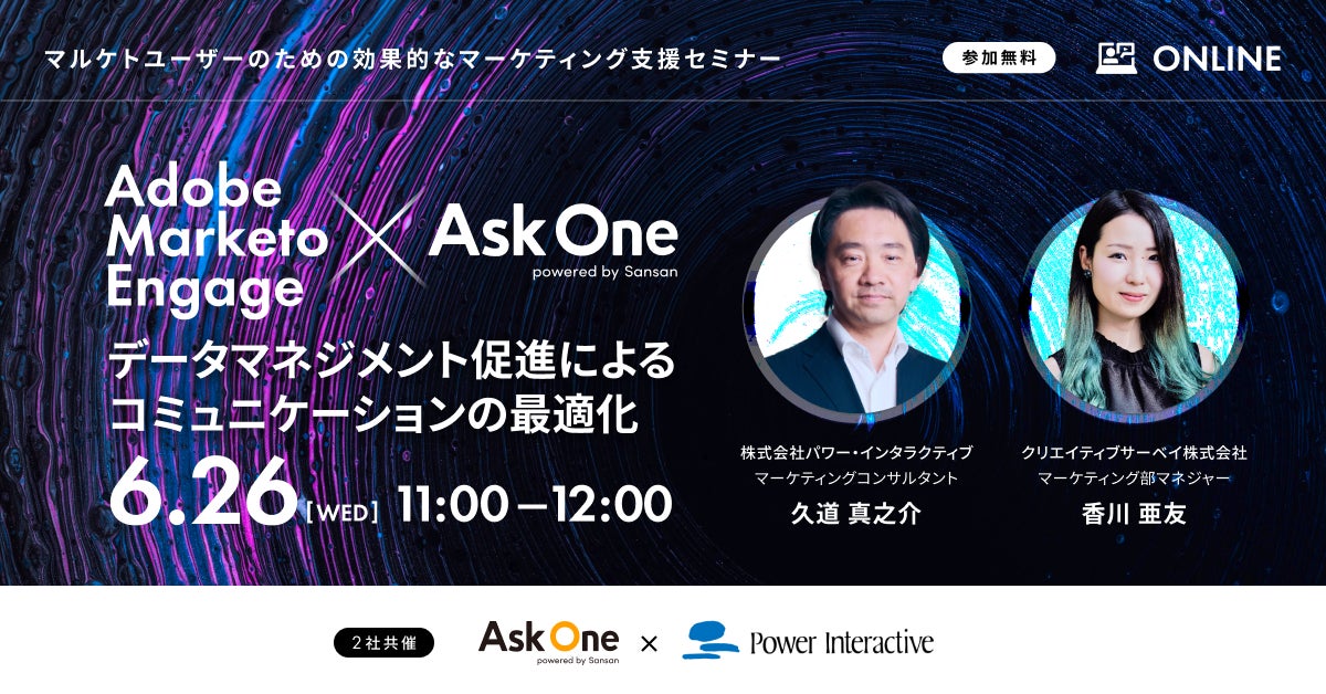【無料ウェビナー】『Adobe Marketo Engage × Ask One〜データマネジメント促進によるコミュニケーションの最適化〜』を、6月26日に開催