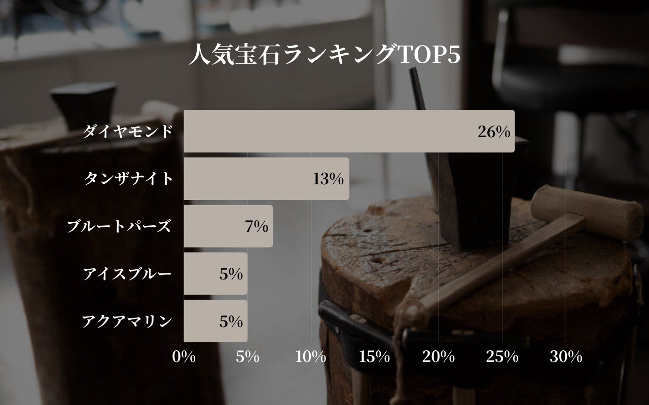 不動の人気を誇る「ダイヤモンド」(26%)に次いで、「タンザナイト」が13%で第2位に急浮上しました。