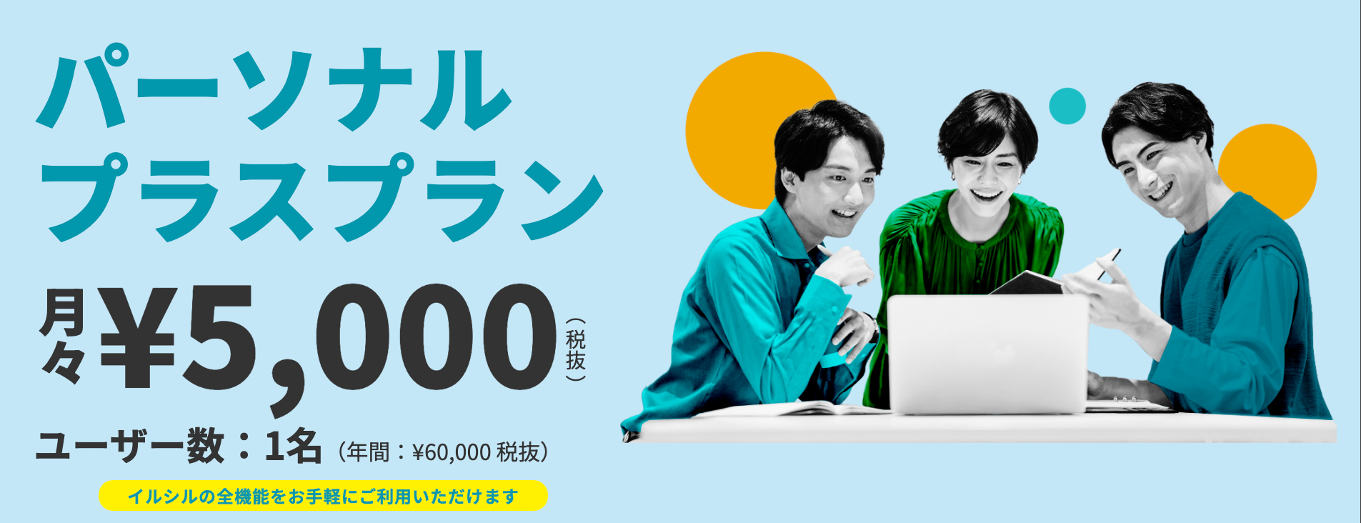 イルシルは、法人企業向けの法人プラン、主にフリーランスや個人利用者向けのパーソナルプランを提供しておりましたが、この度お客様のニーズに応える形で法人プランとパーソナルプランの中間プランに該当する「パーソナルプラスプラン」を2月20日より提供開始いたしました。