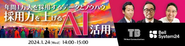 下記の通り、採用ノウハウの不足や、データに基づく意思決定について課題を抱えているご担当者様向けに、オンラインセミナー「採用力を上げるAI活用〜年間1万人を採用するデータとノウハウ〜」を2024年1月24日(水)に開催します。