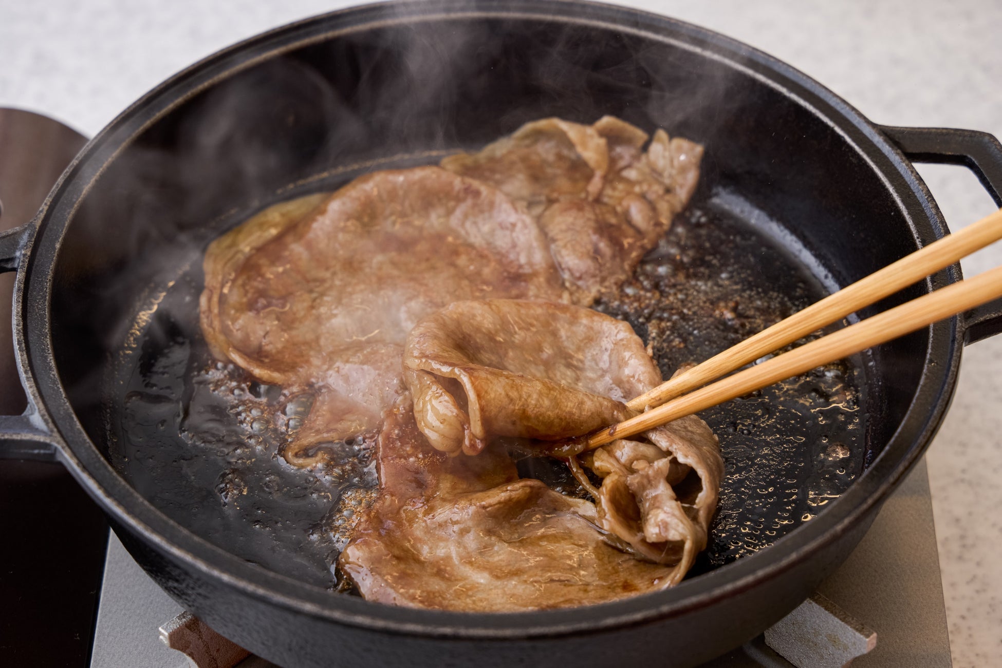 「関東風」:たれを「割り下」の状態にして、肉を少し焼いた後、食材とたれを入れて煮ながら食べる