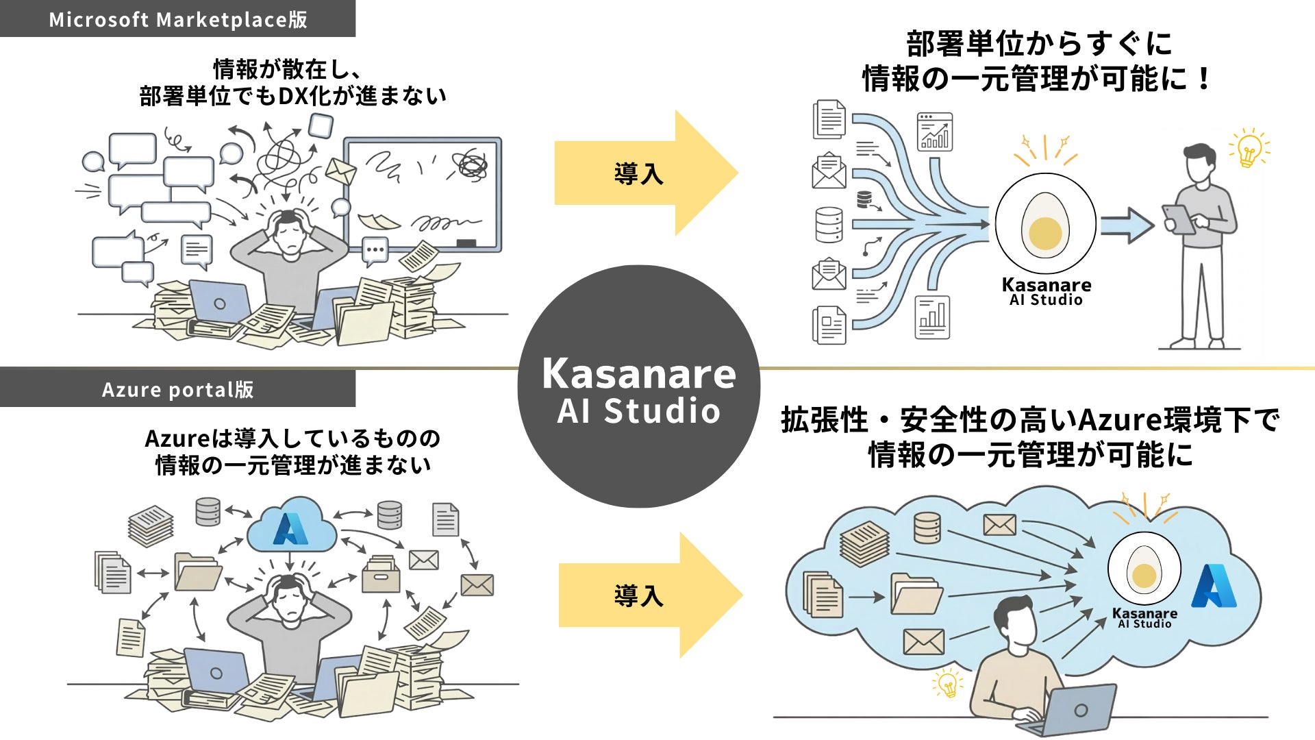 この度、当社は企業の業務を自動化する生成AIソフトウェア「Kasanare」と同等の機能を有する「Kasanare AI Studio」を、Microsoft社が提供するクラウドマーケットプレイス「Microsoft Marketplace」および「Microsoft Azure Portal」において、2026年2月2日(月)より提供開始します。