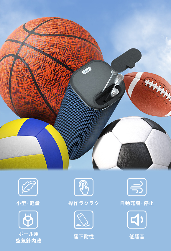 【高速空気充填/満タン自動停止機能/ボール用空気針内蔵】