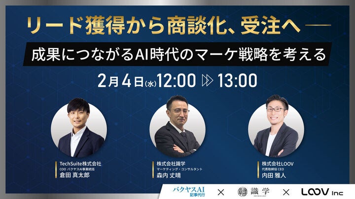 【2月4日(水)|共催ウェビナー開催のお知らせ】「リード獲得から商談化、受注へ ─ 成果につながるAI時代のマーケ戦略を考える」にバクヤスAI 記事代行が登壇