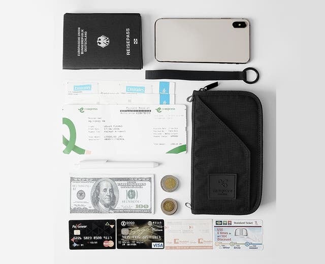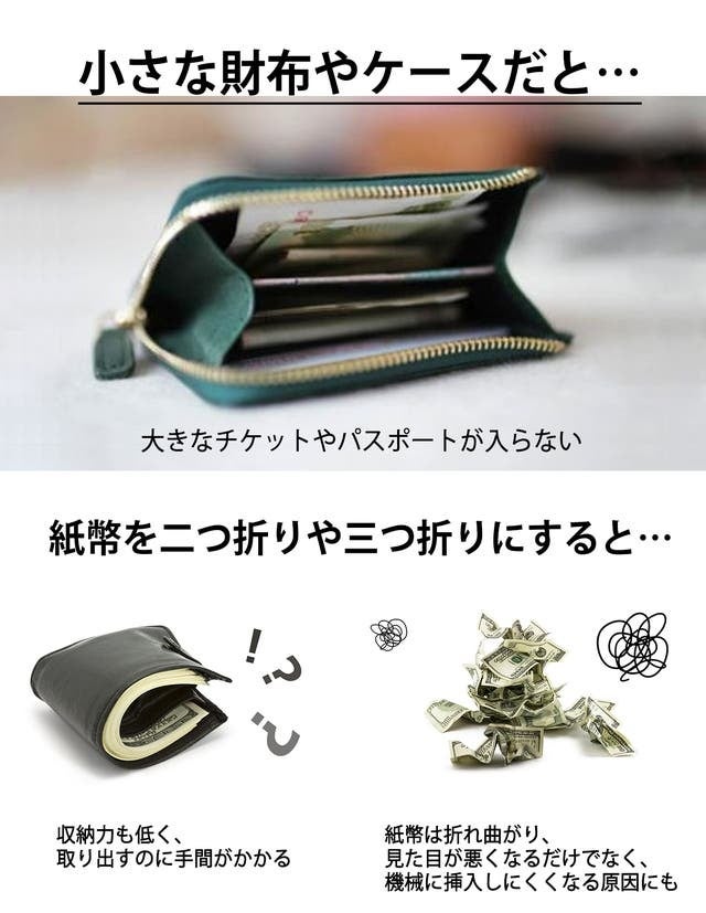 大容量で、出張や旅行に必要なチケット、パスポート、ICカード、クレジットカード、コイン、鍵などを整理して収納できます。スマートフォンも収納可能です。
