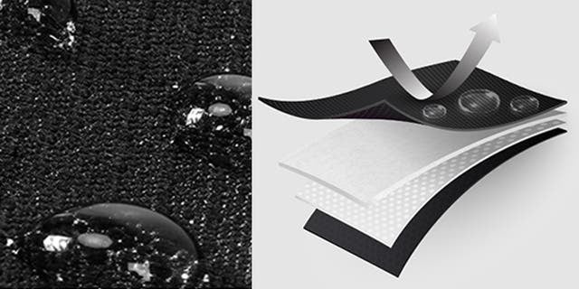 丈夫なポリエステル素材に撥水コーティング加工を施しており、水を弾き、屋外の
