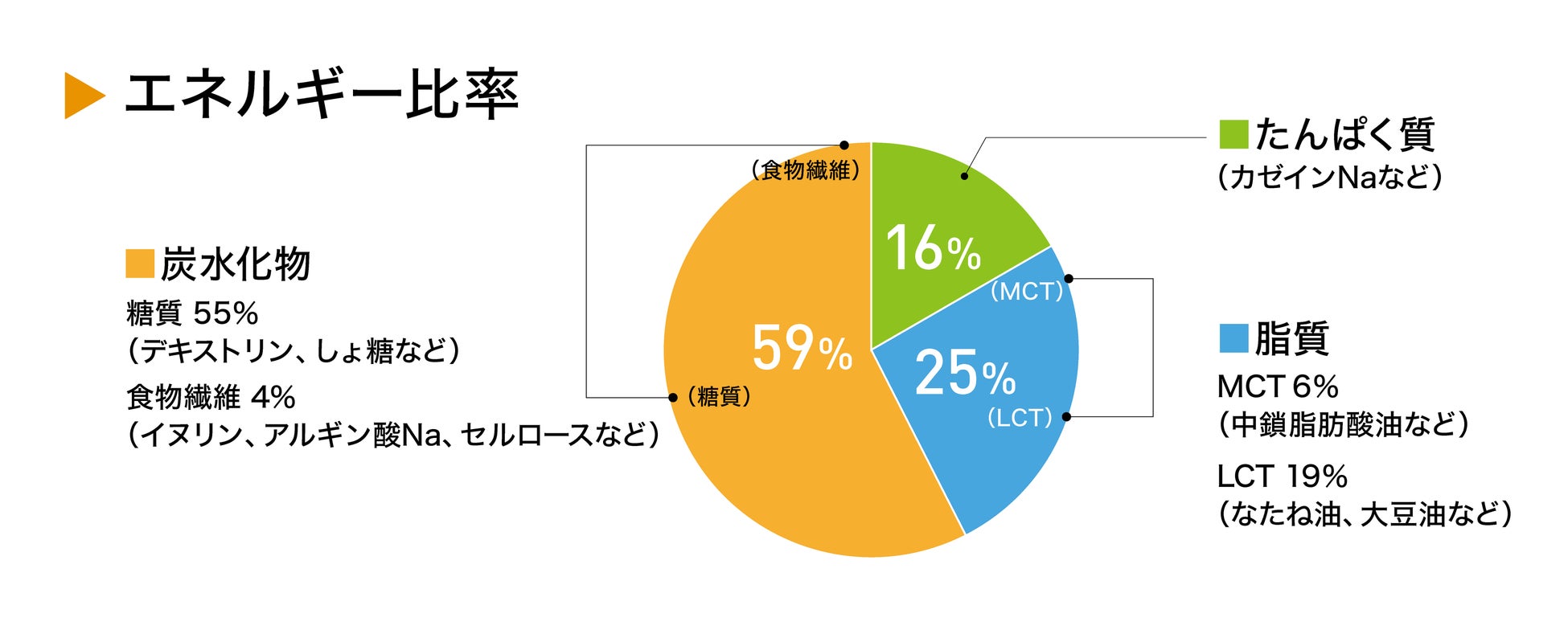 脂質25% (中鎖脂肪酸油などMCT 6%、なたね油・大豆油などLCT 19%)