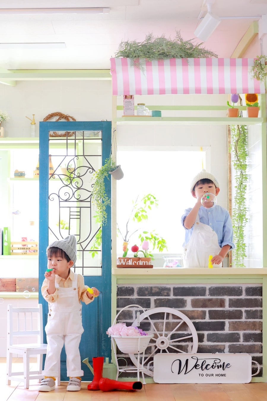 写真館を『美しさを表現し、思い出を記録する、楽しい遊びの空間』と定義し、おしゃれなインテリアと新しいスタイルの写真で子どもはもちろん大人でも楽しみながら自然な表情を引き出してくれると評判をいただいています。赤ちゃん(ベビー)撮影、キッズ、家族写真、七五三、マタニティ、1/2成人式、成人式、ウェディング撮影まで大切な日々の撮影を行っています。