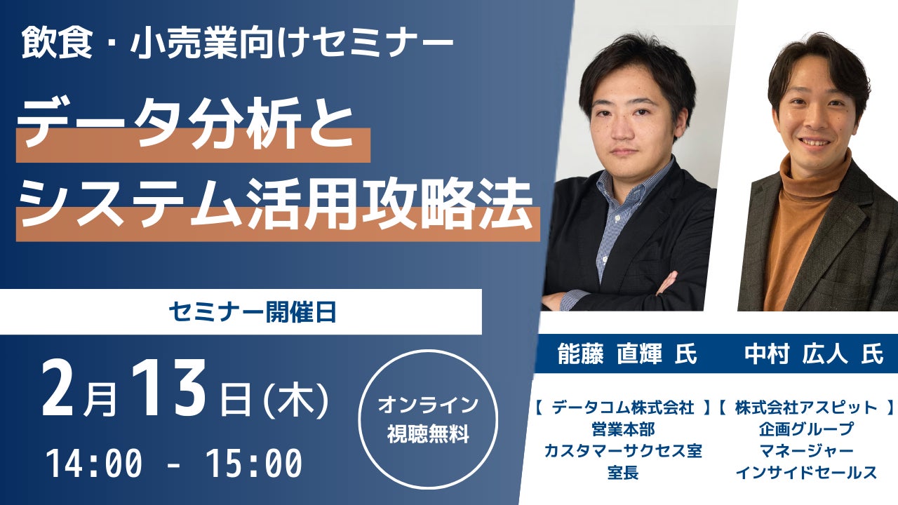小売業界に特化した商品・顧客分析ソリューションを始めとする、パッケージシステムを開発・提供しているデータコム株式会社(本社:宮城県仙台市、代表取締役:小野寺修一)は2025年2月13日(木)に株式会社アスピット(本社:神戸市東灘区、代表取締役社長:小林尊士)と共催ウェビナーを開催いたします。