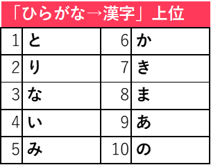 1位から順に、「と」「り」「な」「い」「み」「か」「き」「ま」「あ」「の」となりました。