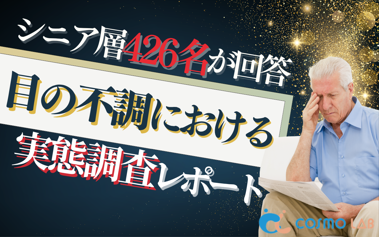 シニア専門のマーケティングプラットホーム コスモラボ(会社名:コスモヘルス株式会社、本社:東京都港区、代表取締役社長 小塚 崇史)がシニア層の『目の不調』に関するアンケートリサーチのレポートをリリースしました。本レポートでは、50代以上のシニア層を対象に「目の不調」に関する意識と実態を調査しました。眼科を検診する頻度、既往・現在のトラブル、気になる症状、生活への影響、実践しているケアや商品への関心など、シニアの目に関する悩みについて、実態が明らかになりました。