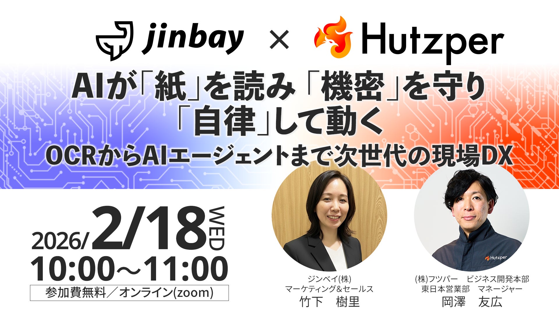 株式会社フツパーとの共催で、「OCRからAIエージェントまで次世代の現場DX」をテーマとした無料セミナーを、2026年2月18日(水)10:00より開催いたします