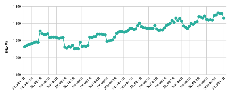 全国アルバイト・パート平均時給は「1,316円」【2025年11月度 アルバイト・パート 平均時給・求人数レポート】