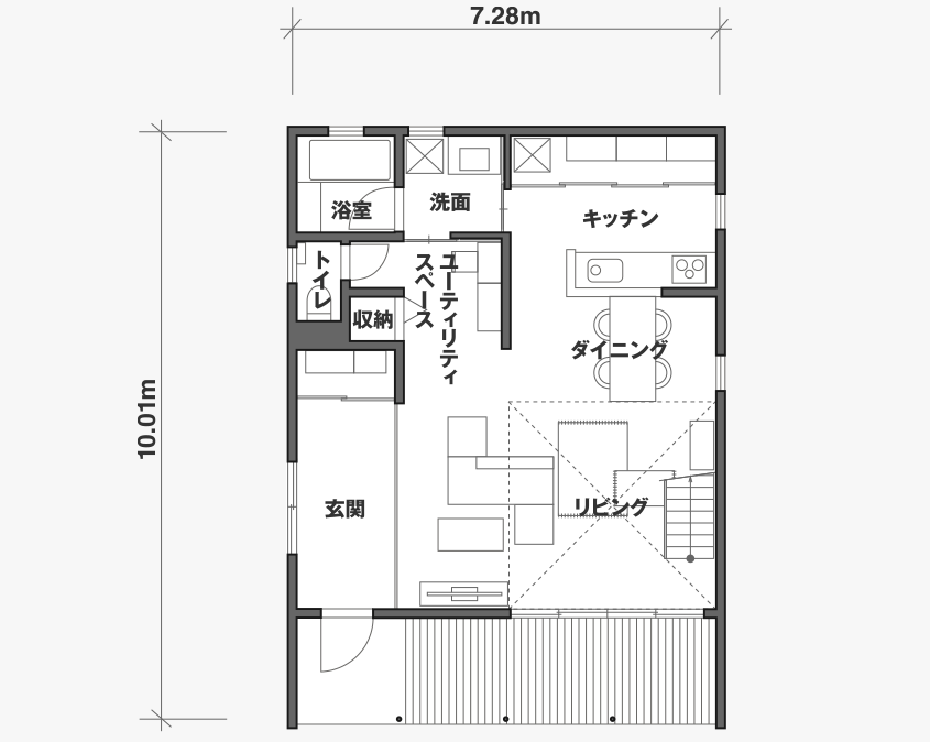 ■木の家間口4間✕奥行5.5間(7.28m✕10.01m)