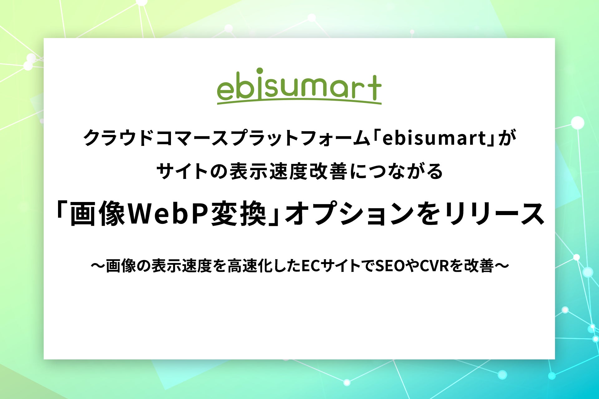 クラウドコマースプラットフォーム「ebisumart」がサイトの表示速度改善につながる「画像WebP変換」オプションをリリース