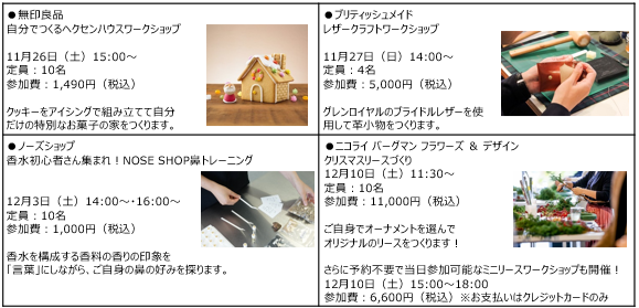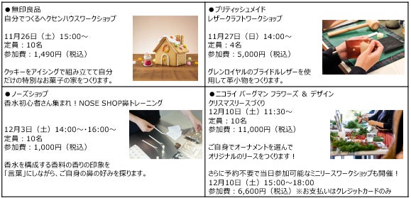 クリスマスのムードを楽しむ!ショップワークショップを全4回開催。