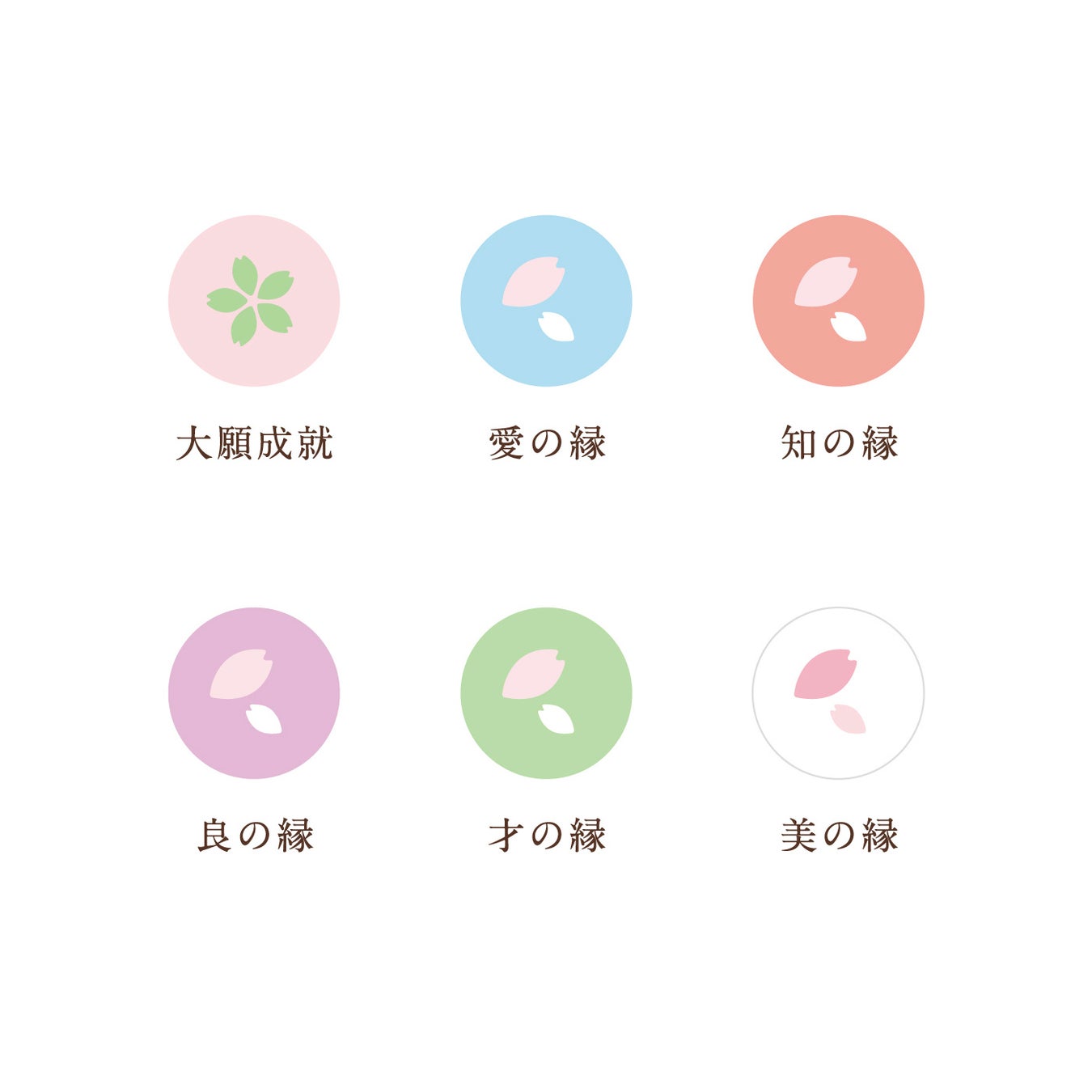 ●容器の底には “しあわせ桜”の印入り。全 6 種のうち、どれに当たるかはパッケージを開けてみるまでのお楽しみです。中でも、「大願成就」はなかなか出会えないレアな印です。