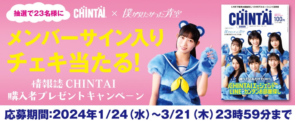 お部屋探しのリーディングカンパニー株式会社CHINTAI(本社:東京都港区 代表取締役社長 奥田倫也)は、「僕が見たかった青空」サイン入りチェキが当たる、『情報誌CHINTAI』購入者プレゼントキャンペーンを実施いたします。