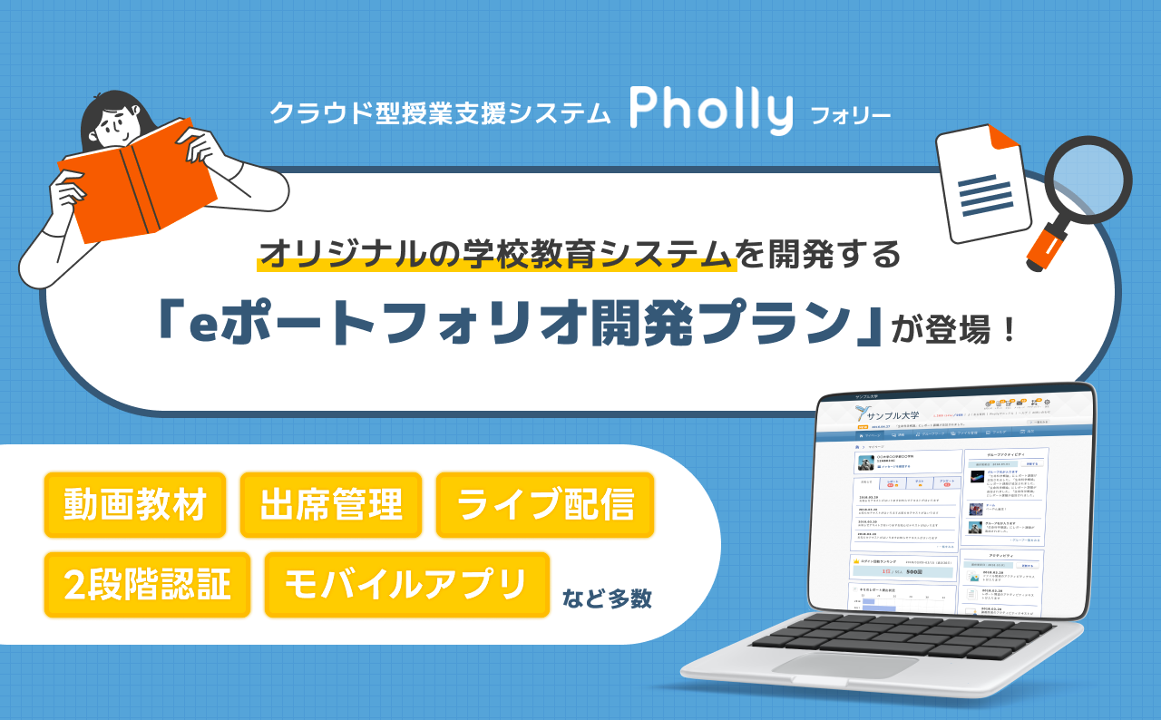 Mogic株式会社(本社:東京都練馬区、代表取締役:山根 陽一、以下 Mogic)は、クラウド型授業支援システム「Pholly(フォリー)」の新プランとして、8年を超えるPhollyの開発と運用で培ったノウハウをもとに、学校教育の情報化を支援するためのオリジナルの教育支援システムをイチから開発できる「eポートフォリオ開発プラン」をリリースいたします。